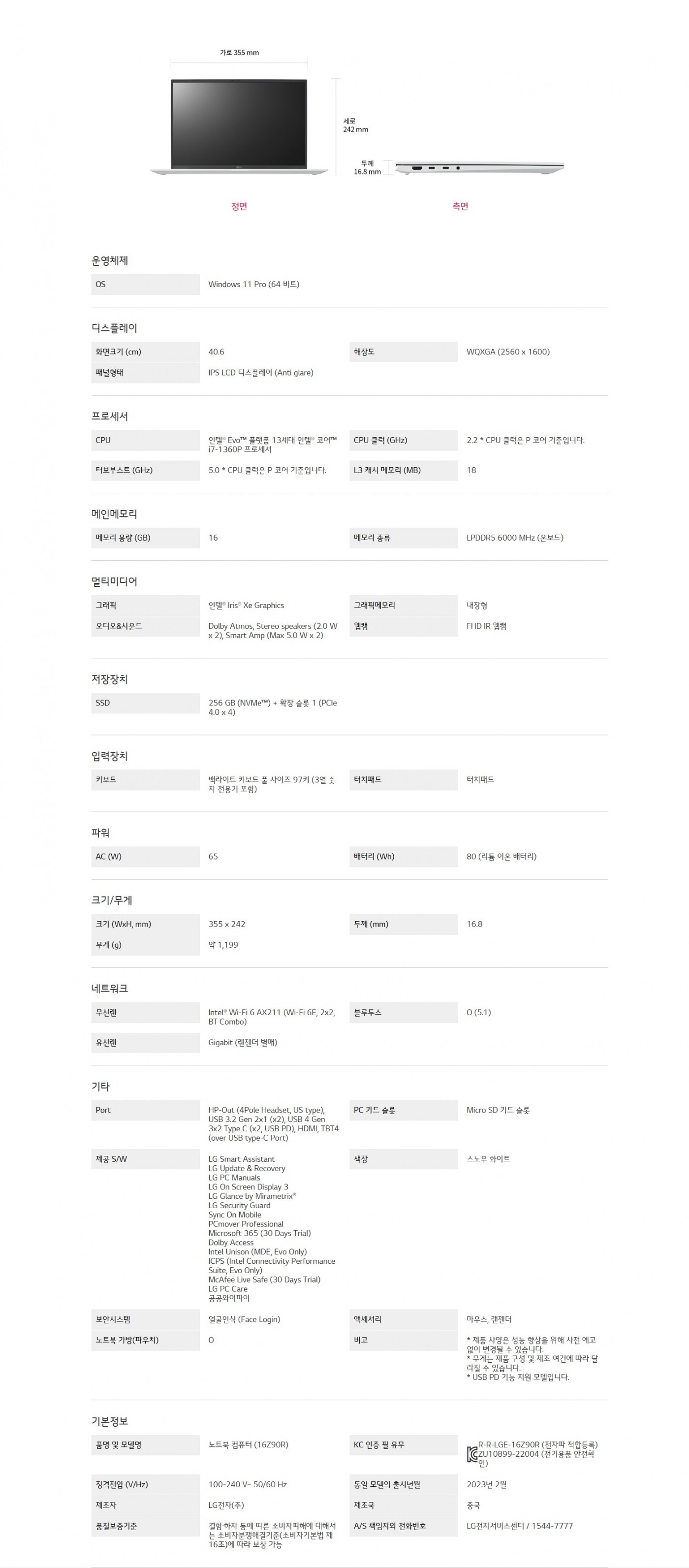 OS:WINDOWS 11 PRO (64 비트) CPU:인텔® EVO™ 플랫폼 13세대 인텔® 코어™ I7-1360P 프로세서 SSD:256 GB (NVME™) + 확장 슬롯