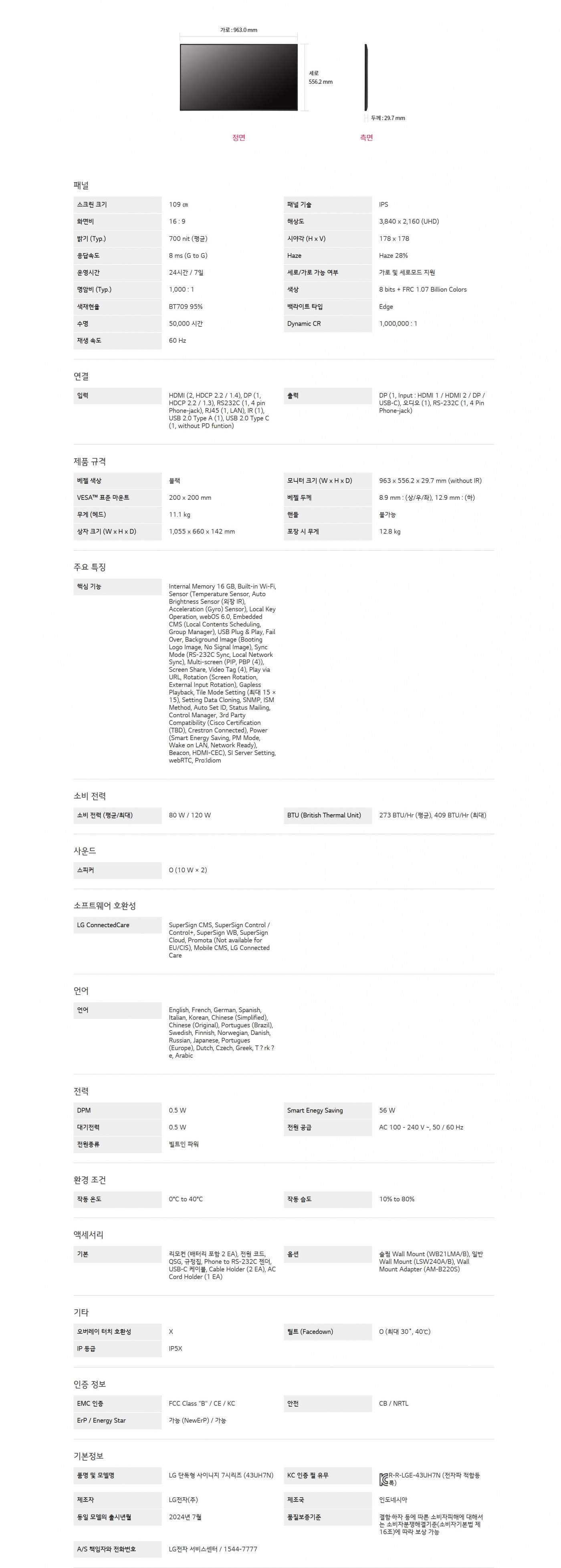 LG 단독형 사이니지 7시리즈