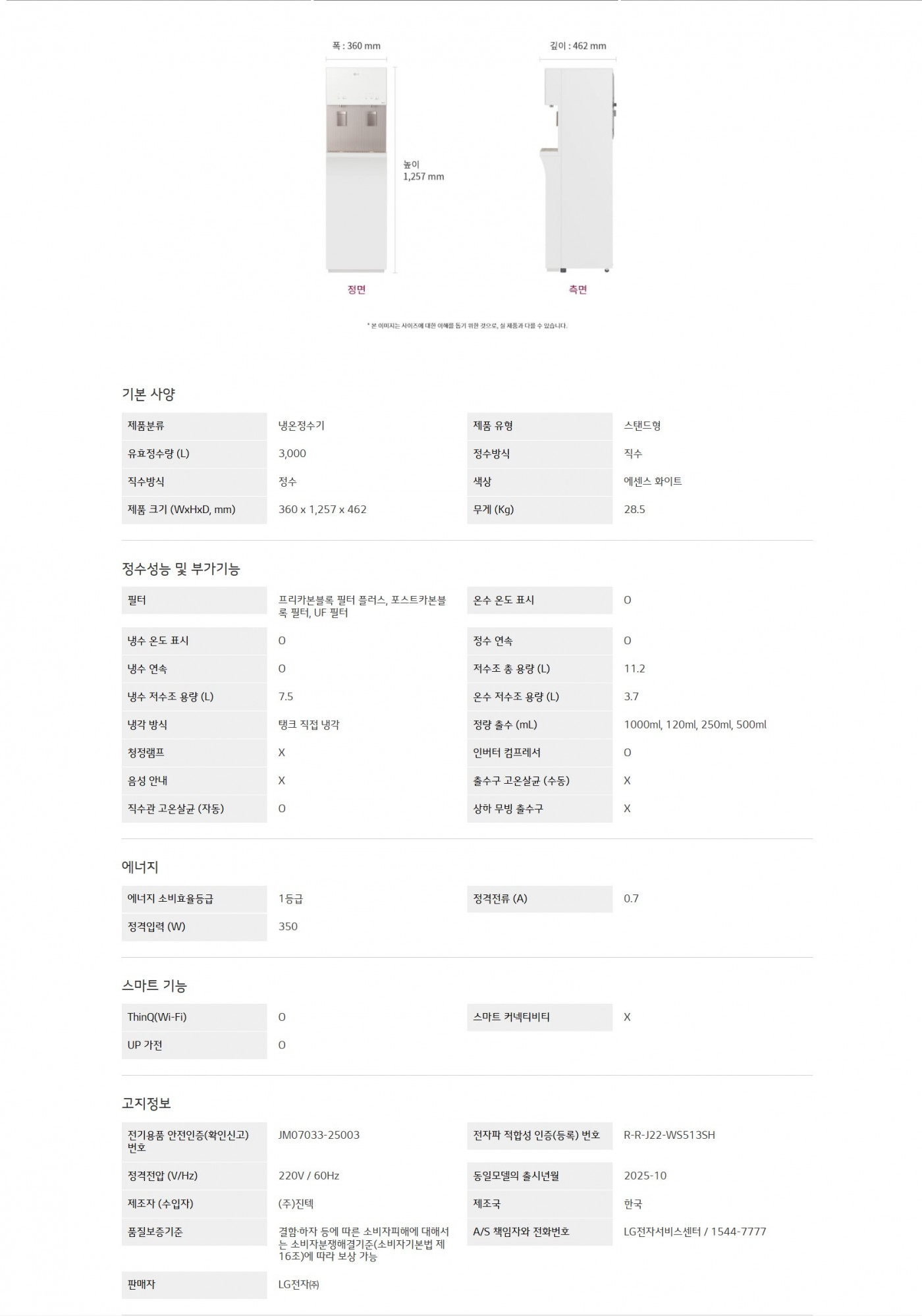 LG 퓨리케어 오브제컬렉션 정수기 (스탠드, 냉온정)