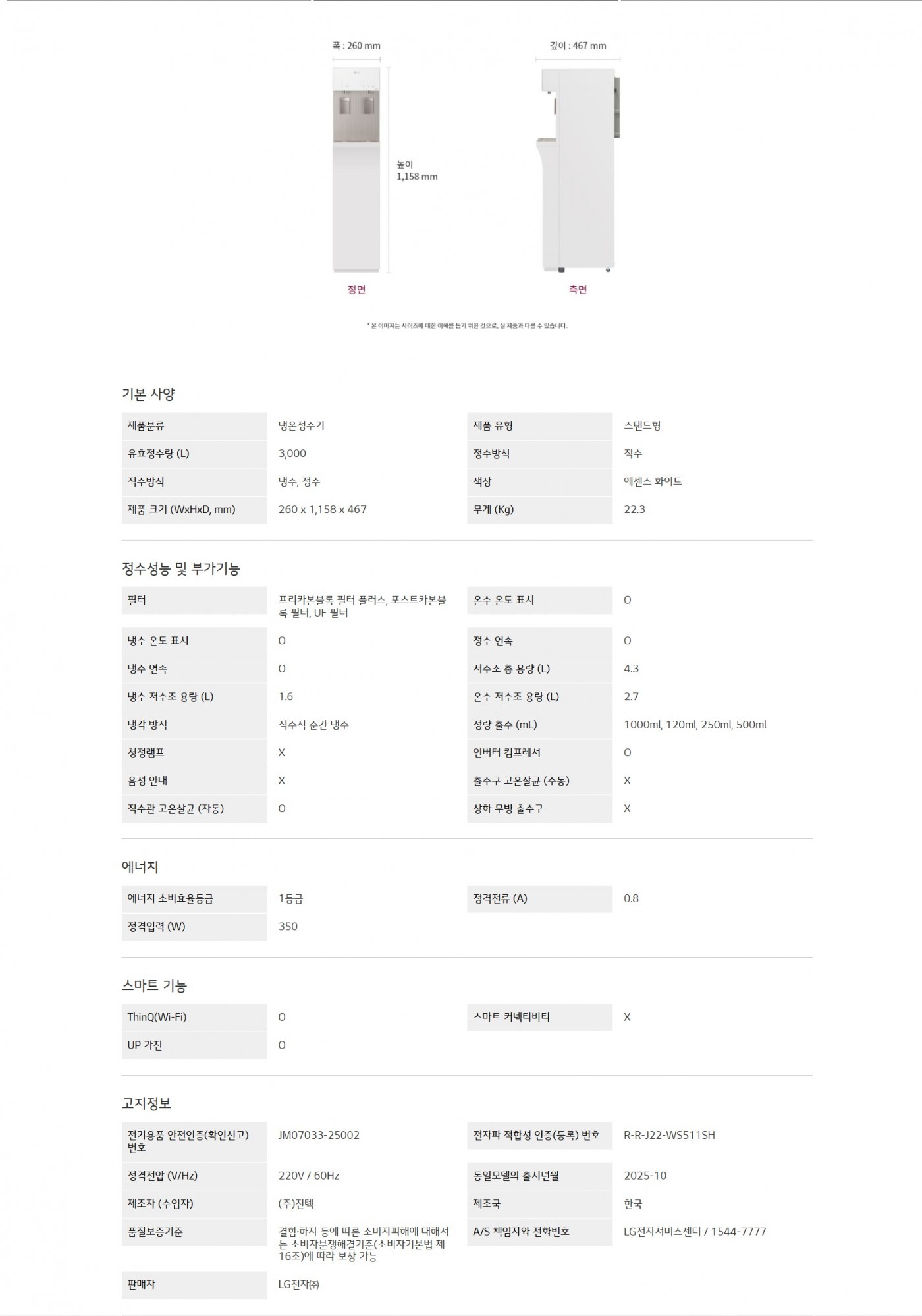 LG 퓨리케어 오브제컬렉션 정수기 (슬림스탠드, 냉온정)